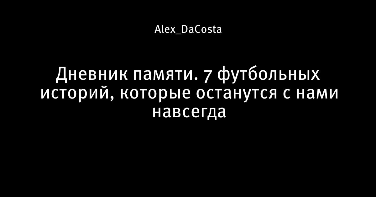 Вспомните, за что вы полюбили футбол? За невероятный матч, который случайно увидели? Или же ваши друзья притащили разочек посмотреть на то, как 22 человека бегают от штрафной до штрафной, пытаясь забить маленький мяч в большие ворота? А потом вы не смогли остановиться? За отдельного футболиста, которому вы подражаете или же просто сопереживаете? Или же за истории, которые врезались в вашу память настолько, что даже если вам сотрут эту самую память, есть небольшой шанс, что вы их не забудете? У каждого из нас есть такие истории. И совсем не обязательно, что именно из-за них вы полюбили эту игру, но обязательно, что эти события навсегда останутся с нами.