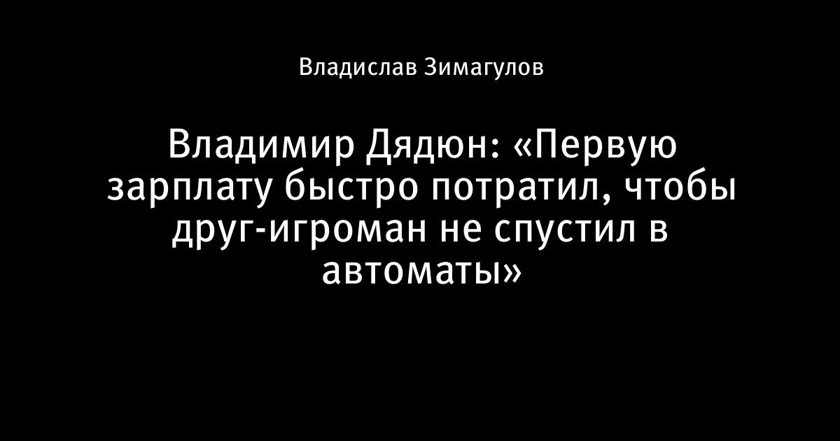 Владимир Дядюн: «Первую зарплату быстро потратил, чтобы друг-игроман не спустил в автоматы»