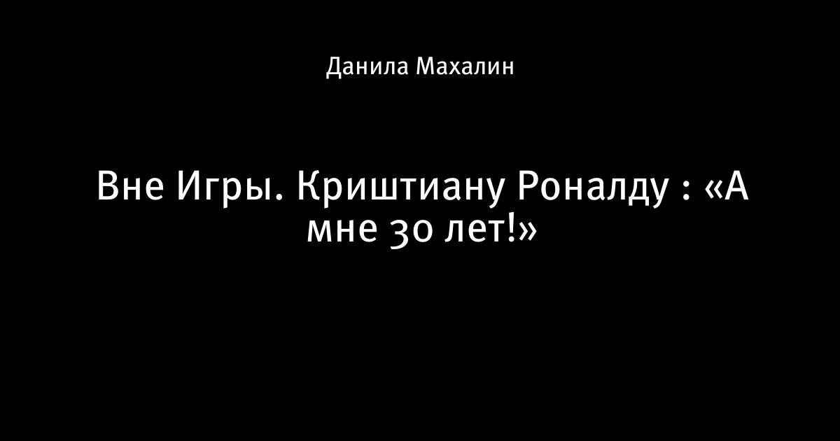 12 февраля 2015, 21:29 Вне Игры. Криштиану Роналду : «А мне 30 лет!» 1 Автор Данила Махалин Этот пост опубликован в блоге на Трибуне Sports.ru. Присоединяйтесь к крупнейшему сообществу спортивных болельщиков! Другие посты блога Телевизор 3.0 Аарон Леннон Златан Ибрагимович Криштиану Роналду