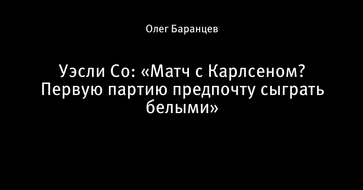 Уэсли Со: «Матч с Карлсеном? Первую партию предпочту сыграть белыми»