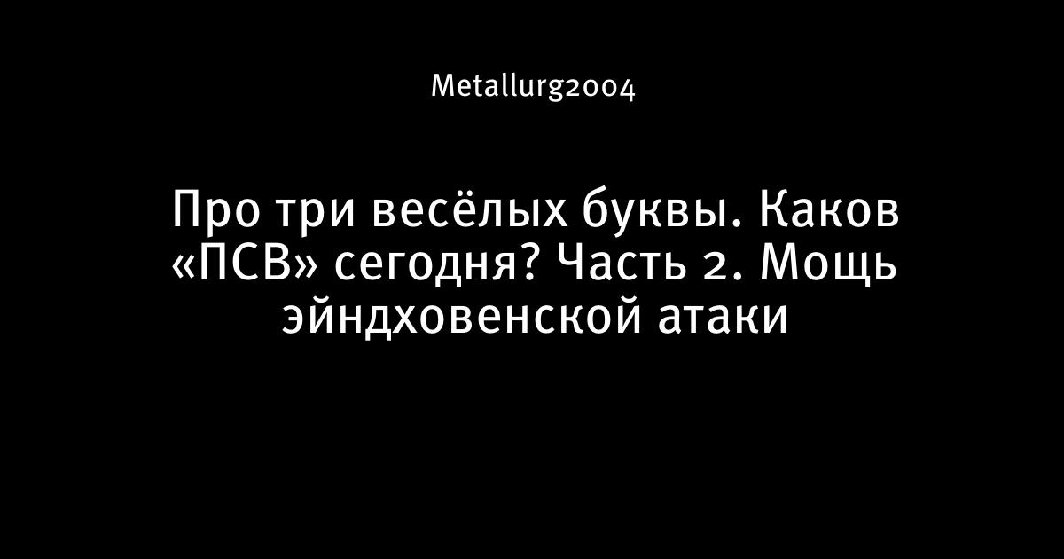 Про три весёлых буквы. Каков «ПСВ» сегодня? Часть 2. Мощь эйндховенской атаки
