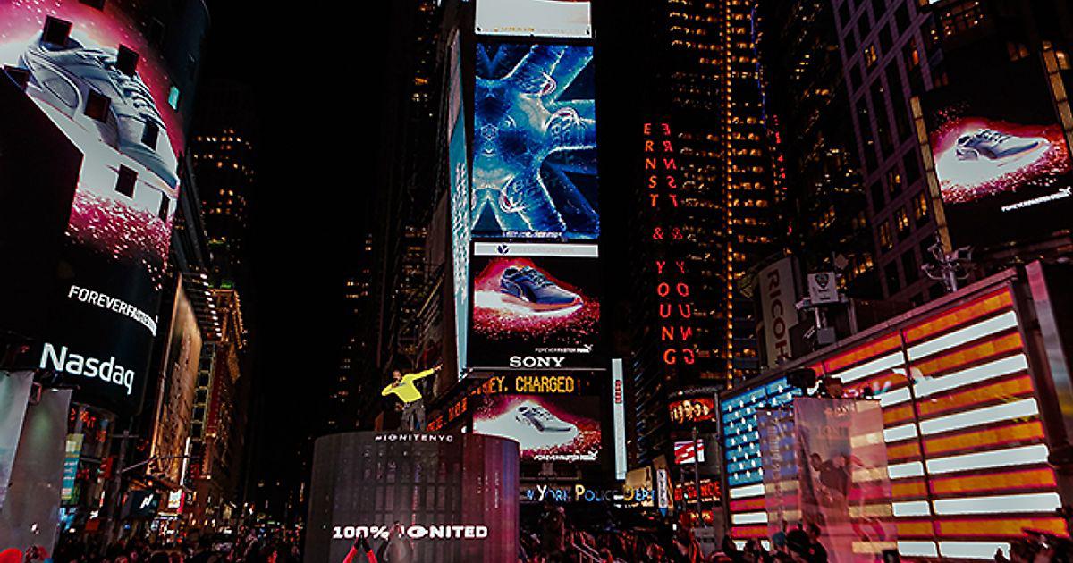Занимающихся бегом людей тем морозным утром я не встретил разве что в Чайна-тауне – там бег заменяет маджонг. К вечеру на Таймс-сквер появляется два десятка беговых дорожек. Желающие могут здесь же взять кроссовки и намотать пару миль. В какой-то момент в числе бегущих оказывается полицейский. В толпе наблюдающих за этим людей замечаю человека в костюме Элмо из «Улицы Сезам». Незаметно пролетает час, дорожки замирают, и перед ними возникает Усэйн Болт, презентующий новые беговые кроссовки PUMA Ignite.