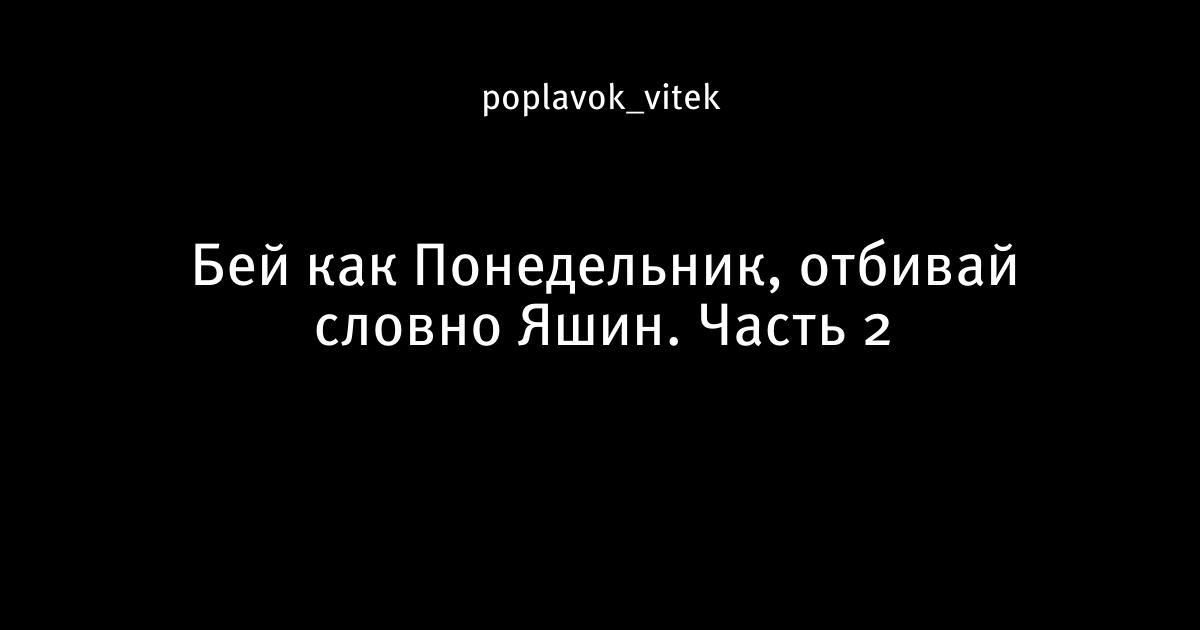 Бей как Понедельник, отбивай словно Яшин. Часть 2