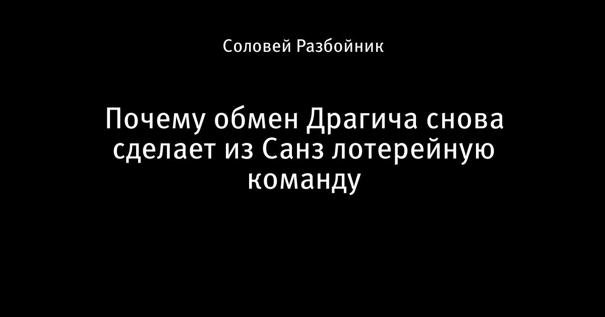 Почему обмен Драгича снова сделает из Санз лотерейную команду