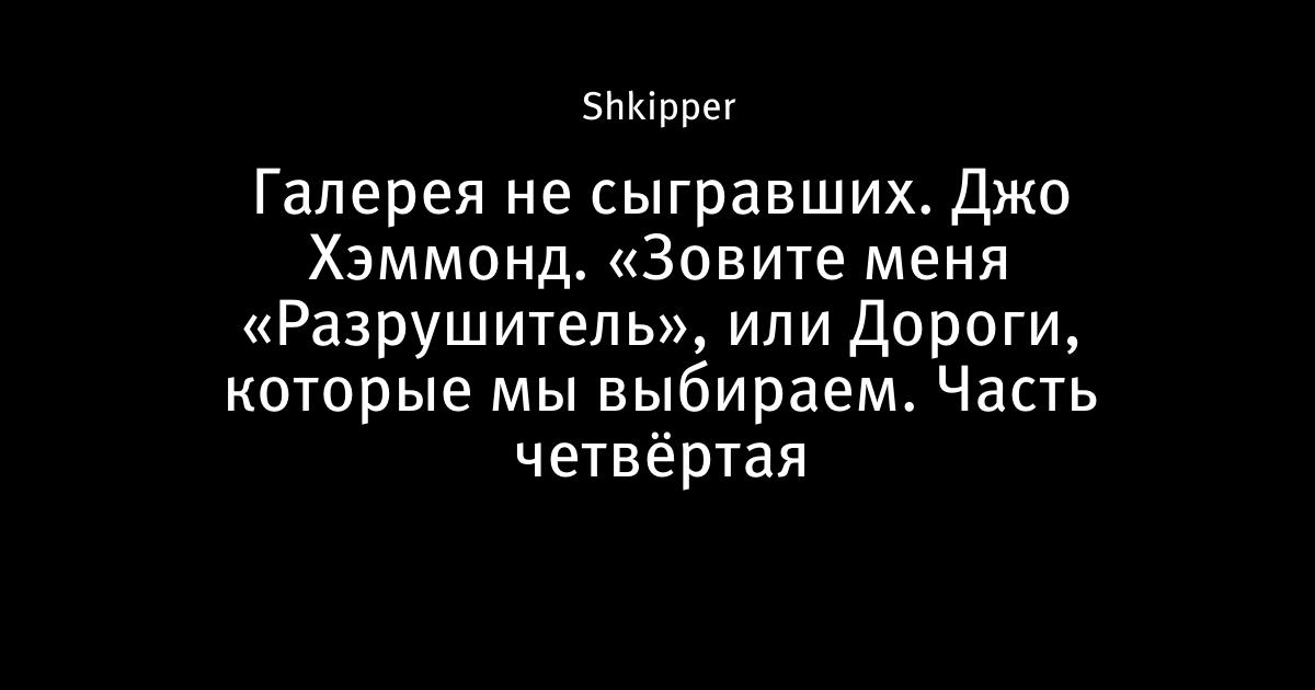 Галерея не сыгравших. Джо Хэммонд. «Зовите меня «Разрушитель», или Дороги, которые мы выбираем. Часть четвёртая