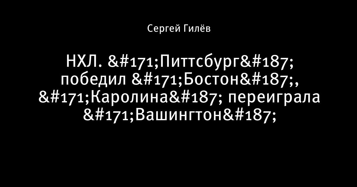 19 марта 2010, 10:35 НХЛ. «Питтсбург» победил «Бостон», «Каролина» переиграла «Вашингтон» Бостон Питтсбург 0:3 Рейнджерс Сент-Луис 3:4 Каролина Вашингтон 4:3 Атланта Оттава 6:3 1:0 3 Артюхин (Одуя, Хэйнси) Торонто Нью-Джерси 2:1 Тампа-Бэй Баффало 2:6 Флорида Финикс 3:4 Нэшвилл Миннесота 5:0 Даллас Филадельфия 3:2 Автор Сергей Гилёв Этот пост опубликован в блоге на Трибуне Sports.ru. Присоединяйтесь к крупнейшему сообществу спортивных болельщиков! Другие посты блога Айс-ТВ