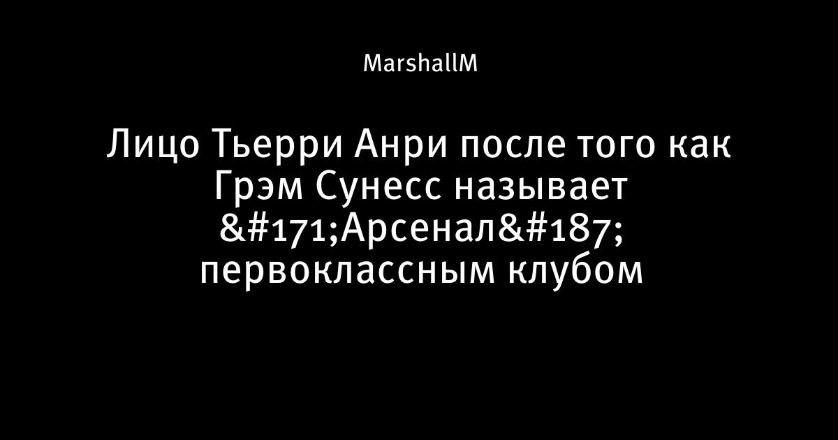 26 февраля 2015, 22:11 Лицо Тьерри Анри после того как Грэм Сунесс называет «Арсенал» первоклассным клубом 1 Автор MarshallM Этот пост опубликован в блоге на Трибуне Sports.ru. Присоединяйтесь к крупнейшему сообществу спортивных болельщиков! Другие посты блога Вы это видели? Тьерри Анри Грэм Сунесс Арсенал