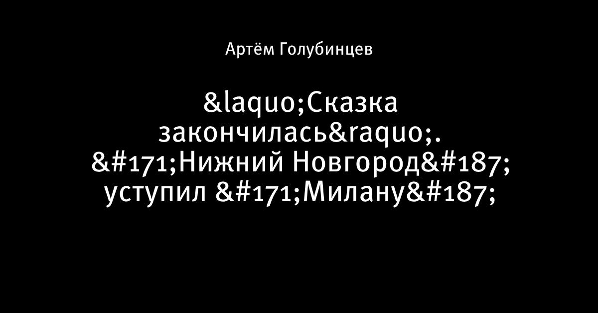 27 февраля 2015, 00:21 «Сказка закончилась». «Нижний Новгород» уступил «Милану» «Нижний Новгород» – «Милан» – 76:85 Автор Артём Голубинцев Этот пост опубликован в блоге на Трибуне Sports.ru. Присоединяйтесь к крупнейшему сообществу спортивных болельщиков! Другие посты блога I Feel Devotion БК Пари Нижний Новгород Евролига Милан