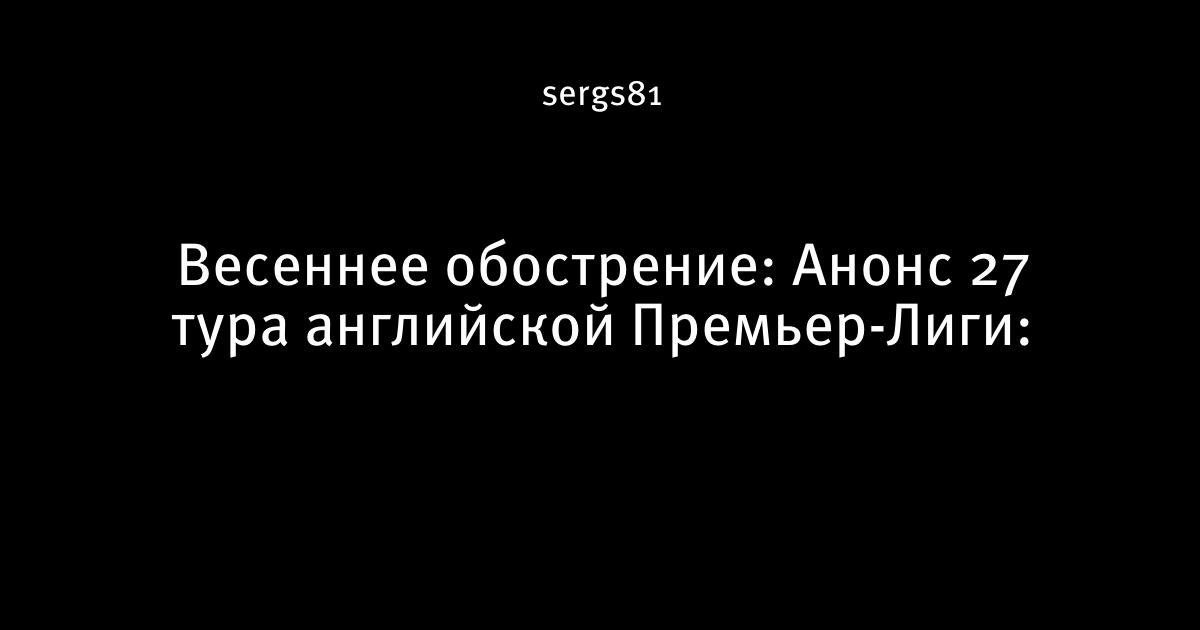 Весеннее обострение: Анонс 27 тура английской Премьер-Лиги: