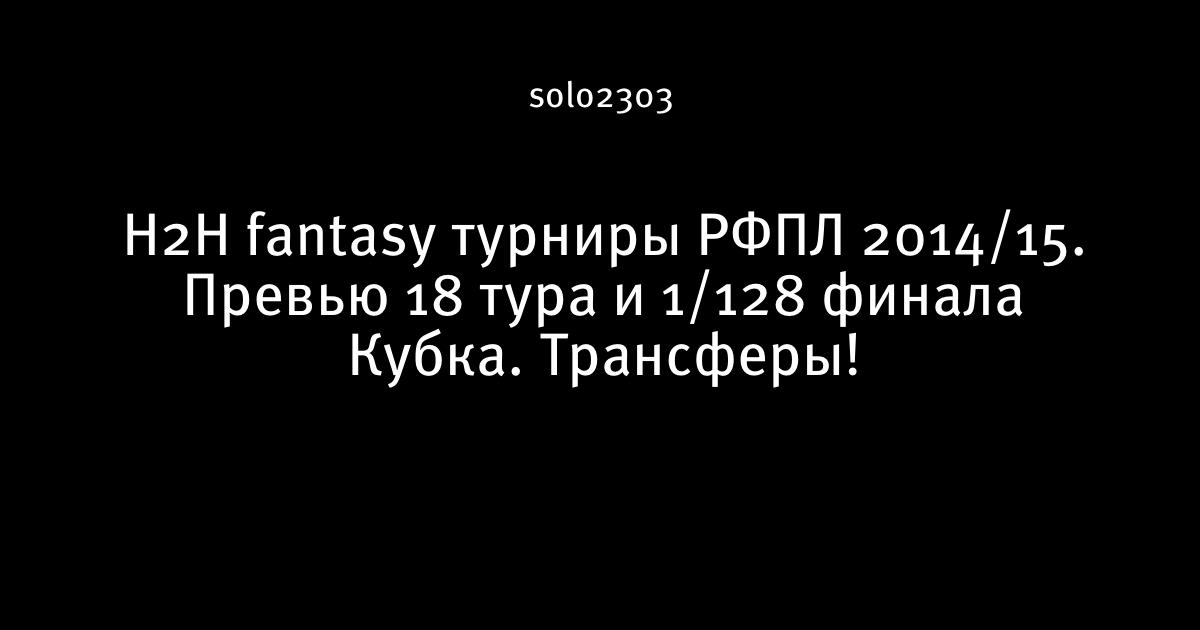 H2H fantasy турниры РФПЛ 2014/15. Превью 18 тура и 1/128 финала Кубка. Трансферы!