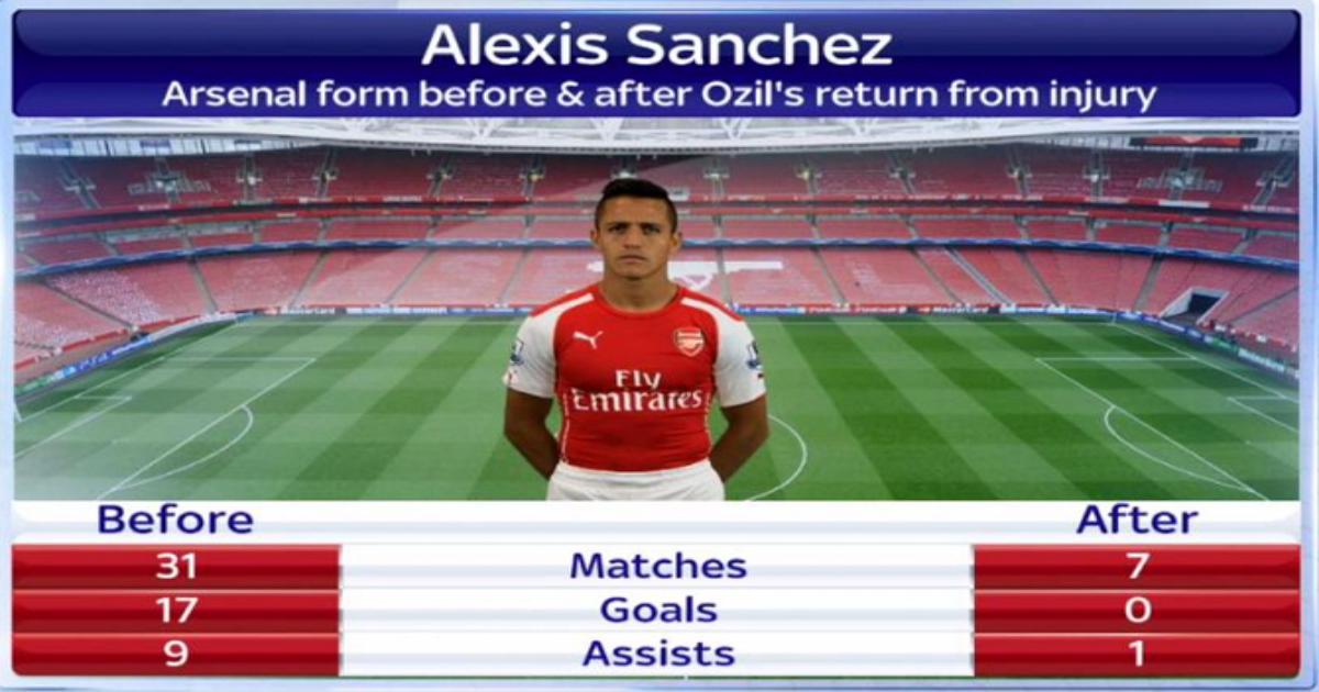 Игровая форма Алексиса Санчеса до и после возвращения Озила после травмы.