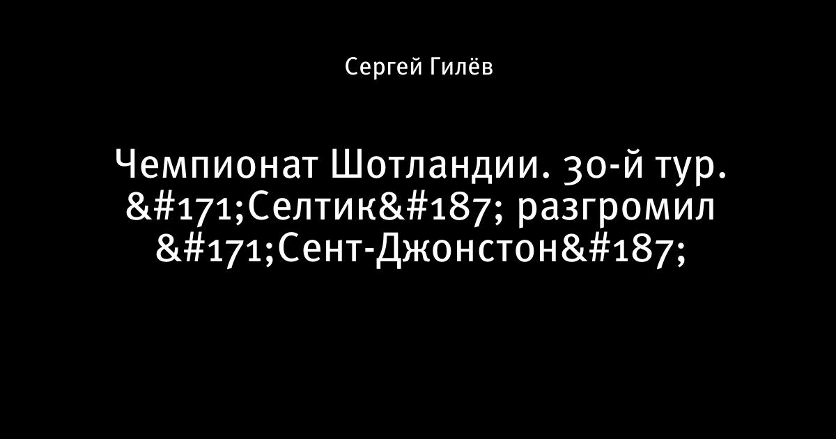 20 марта 2010, 22:34 Чемпионат Шотландии. 30-й тур. «Селтик» разгромил «Сент-Джонстон» Хартс Хайберниан 2:1 1:0 Driver (24), 2:0 Glen (27), 2:1 Riordan (79) Селтик Сент-Джонстон 3:0 1:0 Thompson (15) 2:0 Роб. Кин (68, пенальти) 3:0 Самарас (88) Автор Сергей Гилёв Этот пост опубликован в блоге на Трибуне Sports.ru. Присоединяйтесь к крупнейшему сообществу спортивных болельщиков! Другие посты блога Разборки в олимпийском Париже