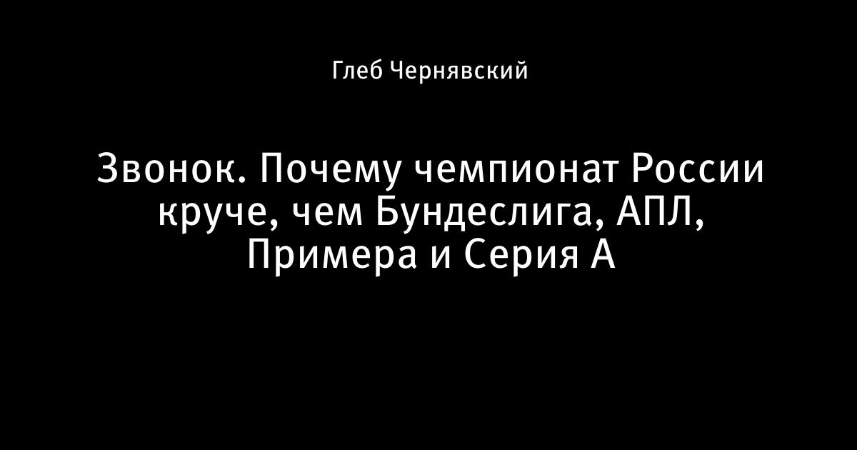 Звонок. Почему чемпионат России круче, чем Бундеслига, АПЛ, Примера и Серия А
