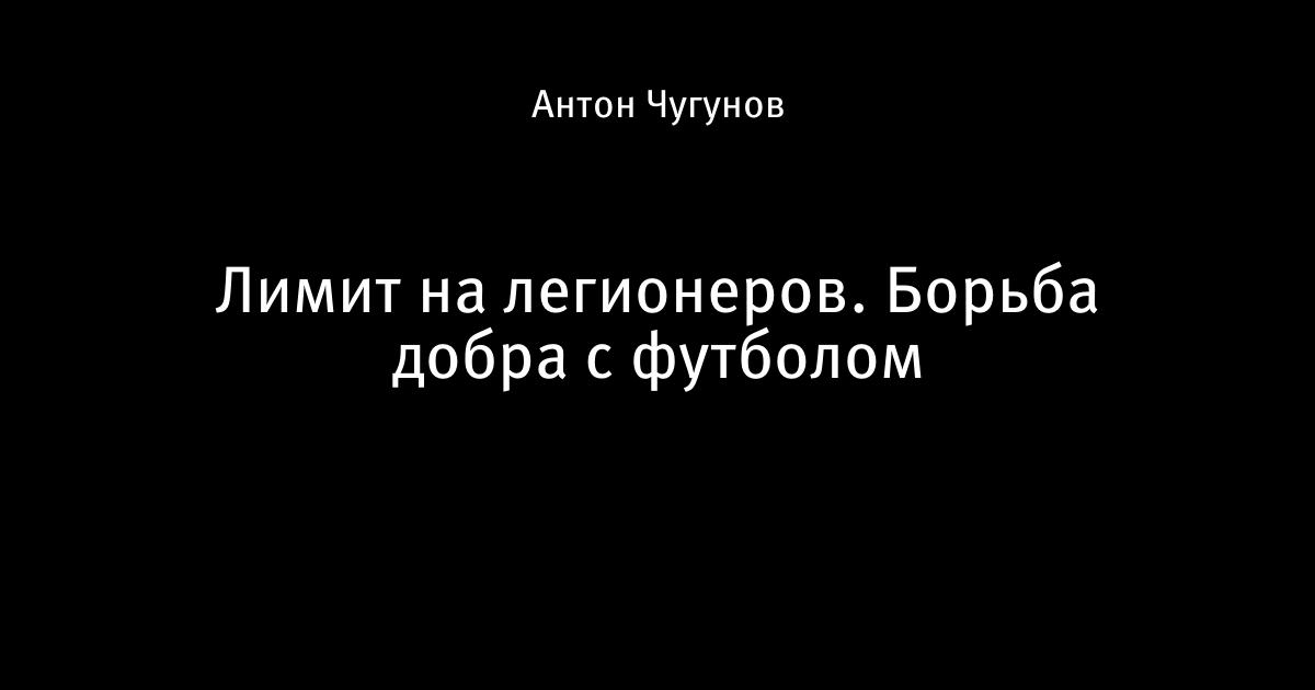 Антон Чугунов размышляет, почему лимит на легионеров вредит футболу как виду спорта.
