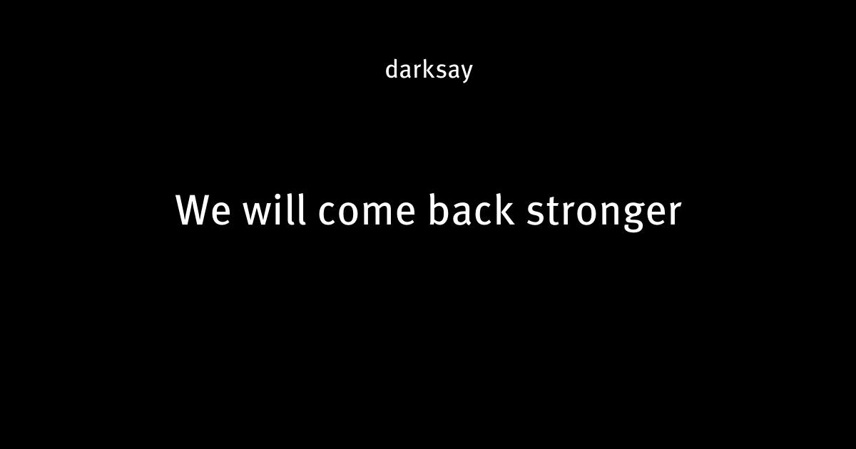 We will come back stronger