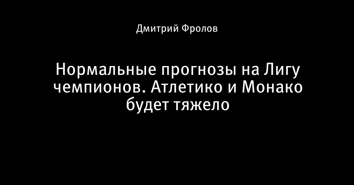 Нормальные прогнозы на Лигу чемпионов. Атлетико и Монако будет тяжело