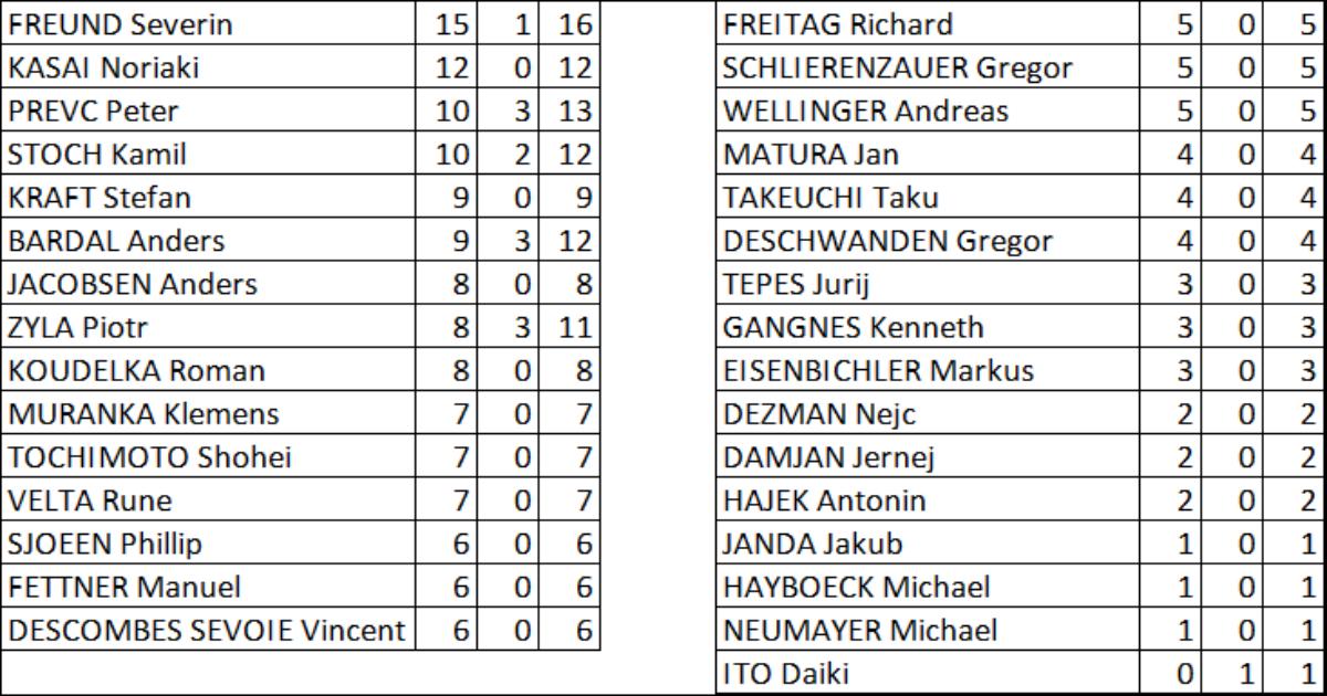 Бонусы за дальность: Превц (134.5 м) - 3 очка, Стох (134 м) - 2 очка, Фройнд и Бардаль (132 м) - по 1 очку