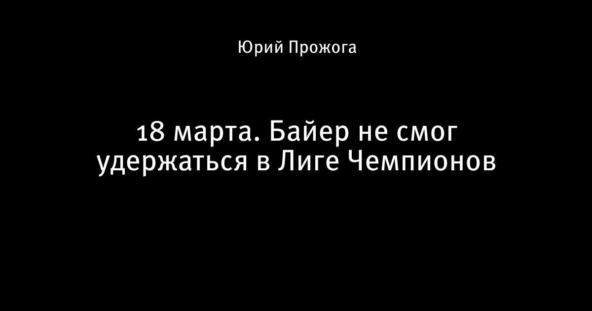 18 марта 2015, 11:34 18 марта. Байер не смог удержаться в Лиге Чемпионов Автор Юрий Прожога Этот пост опубликован в блоге на Трибуне Sports.ru. Присоединяйтесь к крупнейшему сообществу спортивных болельщиков! Другие посты блога Рисую спорт Байер Лига чемпионов УЕФА Диего Симеоне Атлетико Фернандо Торрес