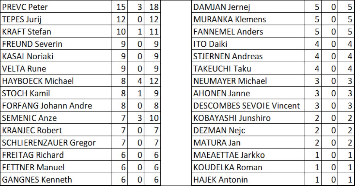 Итоги 29-го этапа в Планице / Замены на 30-й этап