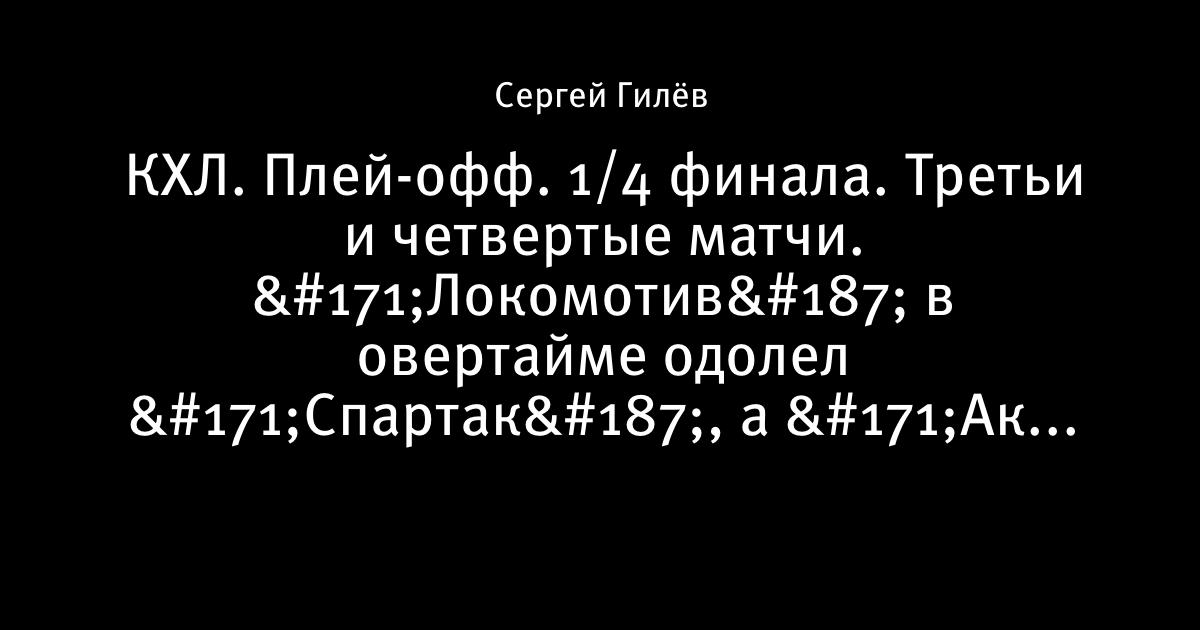 24 марта 2010, 02:17 КХЛ. Плей-офф. 1/4 финала. Третьи и четвертые матчи. «Локомотив» в овертайме одолел «Спартак», а «Ак Барс» уступил «Магнитке» Ак Барс Металлург Мг 0:1 (0:0, 0:0, 0:0, 0:1) Нефтехимик Салават Юлаев 1:0 (0:0, 1:0, 0:0) Спартак Локомотив 3:4 (1:1, 0:1, 2:1, 0:1) Динамо Рига ХК МВД 4:5 (2:1, 1:3, 1:0, 0:1) Автор Сергей Гилёв Этот пост опубликован в блоге на Трибуне Sports.ru. Присоединяйтесь к крупнейшему сообществу спортивных болельщиков! Другие посты блога Айс-ТВ