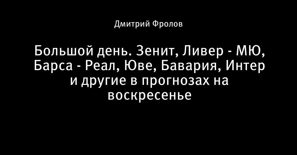 Большой день. Зенит, Ливер - МЮ, Барса - Реал, Юве, Бавария, Интер и другие в прогнозах на воскресенье