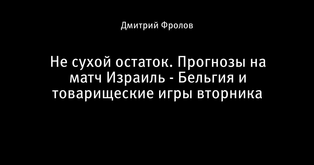 Не сухой остаток. Прогнозы на матч Израиль - Бельгия и товарищеские игры вторника