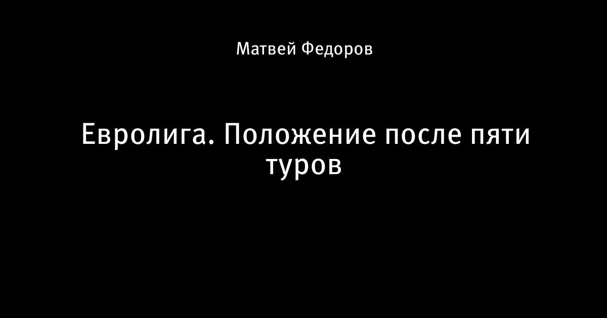26 марта 2010, 17:28 Евролига. Положение после пяти туров Автор Матвей Федоров Этот пост опубликован в блоге на Трибуне Sports.ru. Присоединяйтесь к крупнейшему сообществу спортивных болельщиков! Другие посты блога Чемпионат от Матвея