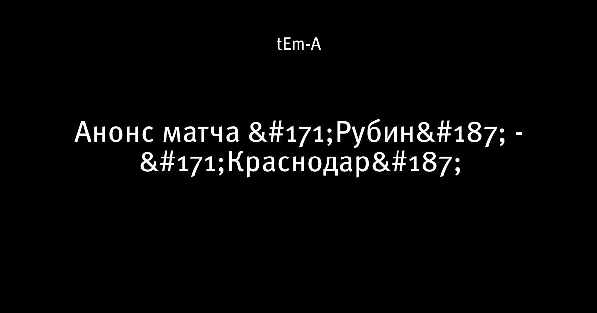 6 апреля 2015, 14:51 Анонс матча «Рубин» - «Краснодар» Автор tEm-A Этот пост опубликован в блоге на Трибуне Sports.ru. Присоединяйтесь к крупнейшему сообществу спортивных болельщиков! Другие посты блога Телевизор 3.0 видео Рубин Краснодар