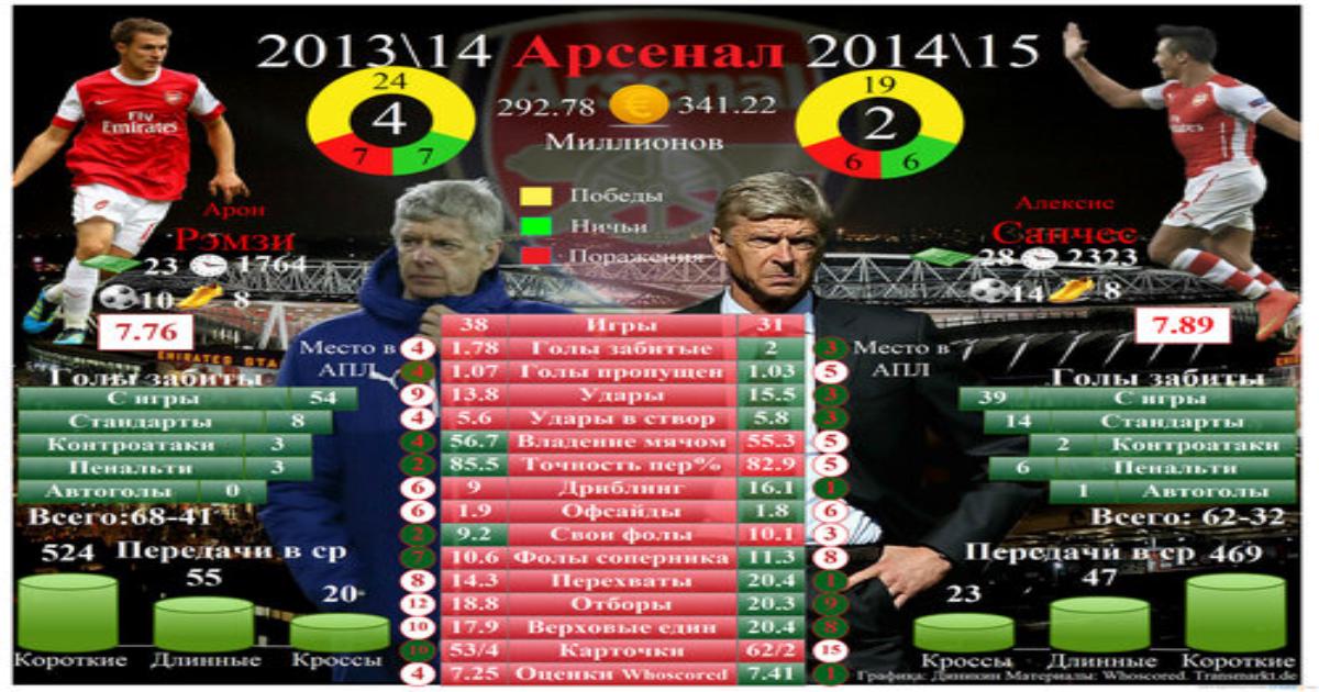 Сравним показатели Лондонского «Арсенала» 2013/14-2014/15