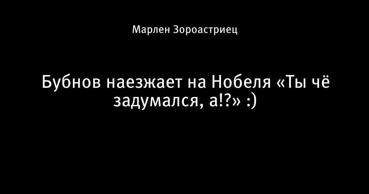 Бубнов наезжает на Нобеля «Ты чё задумался, а!?» :)