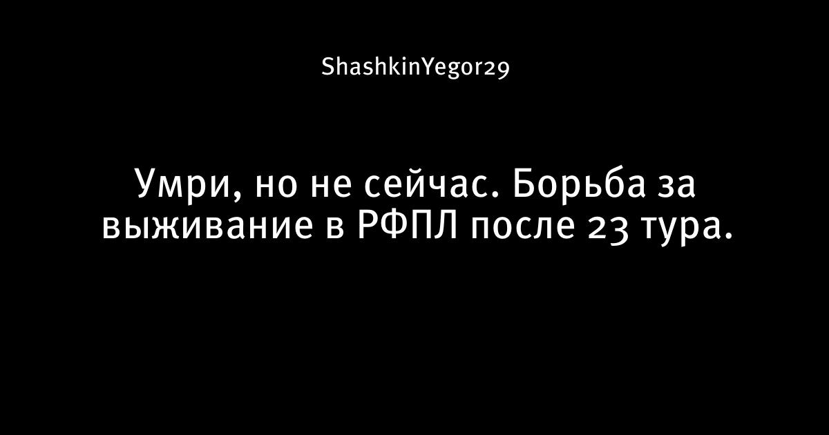 Сегодня мы запускаемых новую серию материалов - "Умри, но не сейчас". Наши тексты, которые будут выходить по вторникам, после каждого тура РФПЛ, расскажут Вам все, что нужно знать о борьбе за выживание. С позиции каждой из команд-участниц этой схватки. Схватки не на жизнь, а на смерть.