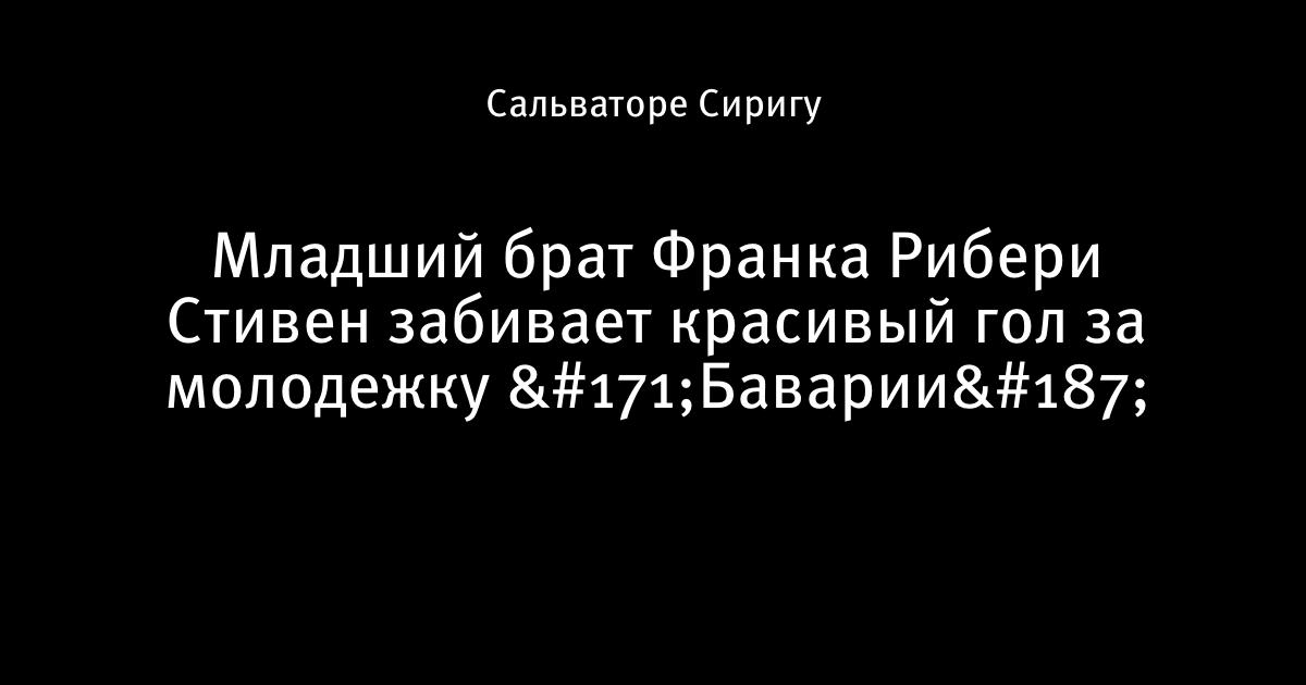 19 апреля 2015, 01:50 Младший брат Франка Рибери Стивен забивает красивый гол за молодежку «Баварии» Автор Сальваторе Сиригу Этот пост опубликован в блоге на Трибуне Sports.ru. Присоединяйтесь к крупнейшему сообществу спортивных болельщиков! Другие посты блога Телевизор 3.0 Франк Рибери Стивен Рибери Бавария