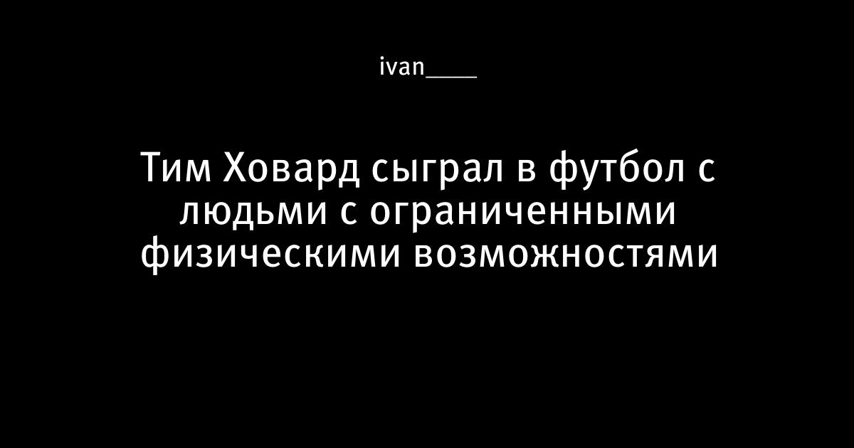 22 апреля 2015, 21:20 Тим Ховард сыграл в футбол с людьми с ограниченными физическими возможностями via Сальваторе Сиригу Автор ivan____ Этот пост опубликован в блоге на Трибуне Sports.ru. Присоединяйтесь к крупнейшему сообществу спортивных болельщиков! Другие посты блога Вы это видели? Тим Ховард фото