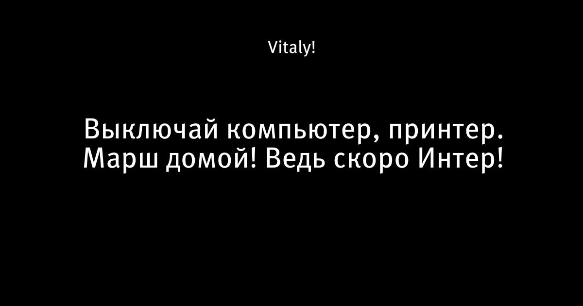 Выключай компьютер, принтер. Марш домой! Ведь скоро Интер!