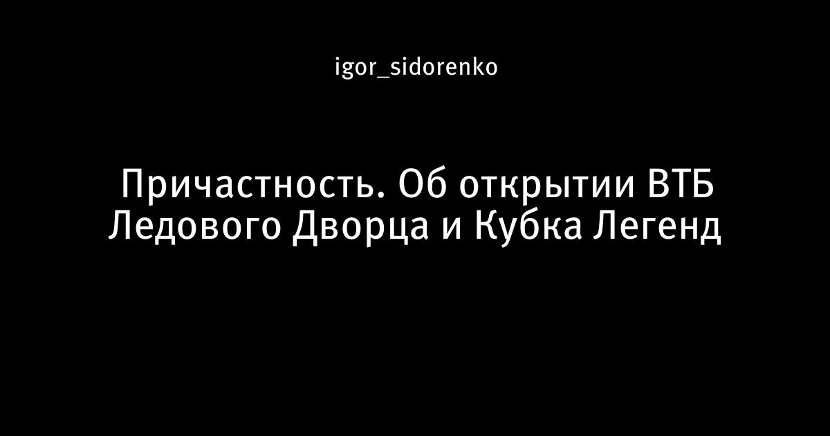 Причастность. Об открытии ВТБ Ледового Дворца и Кубка Легенд
