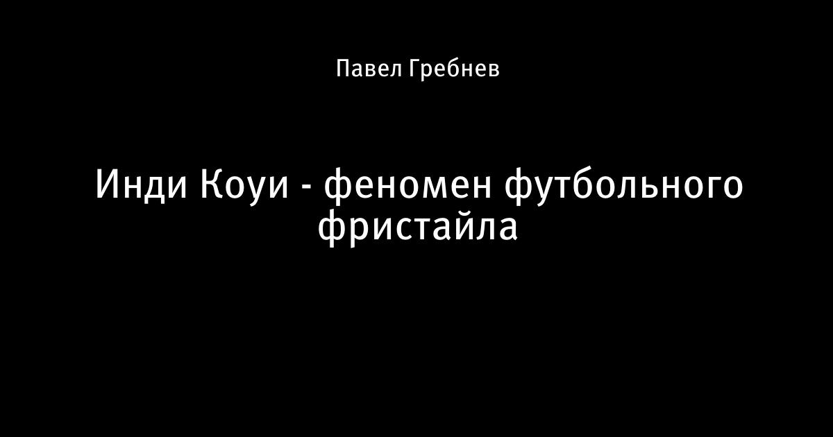 1 мая 2015, 14:00 Инди Коуи - феномен футбольного фристайла 1 Crossbar Challenge: 2 Инди Коуи в ролике к ЧМ-2014: 3 Автор Павел Гребнев Этот пост опубликован в блоге на Трибуне Sports.ru. Присоединяйтесь к крупнейшему сообществу спортивных болельщиков! Другие посты блога Эстетика футбола футбольный фристайл Инди Коуи