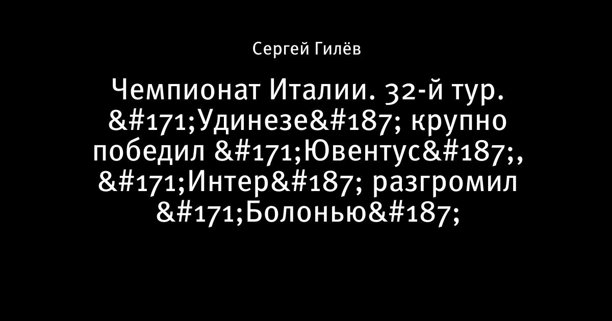 Чемпионат Италии. 32-й тур. «Удинезе» крупно победил «Ювентус», «Интер» разгромил «Болонью»