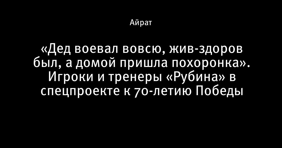 «Дед воевал вовсю, жив-здоров был, а домой пришла похоронка». Игроки и тренеры «Рубина» в спецпроекте к 70-летию Победы