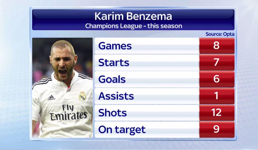 Статистика Карима Бензема в нынешнем розыгрыше Лиги чемпионов