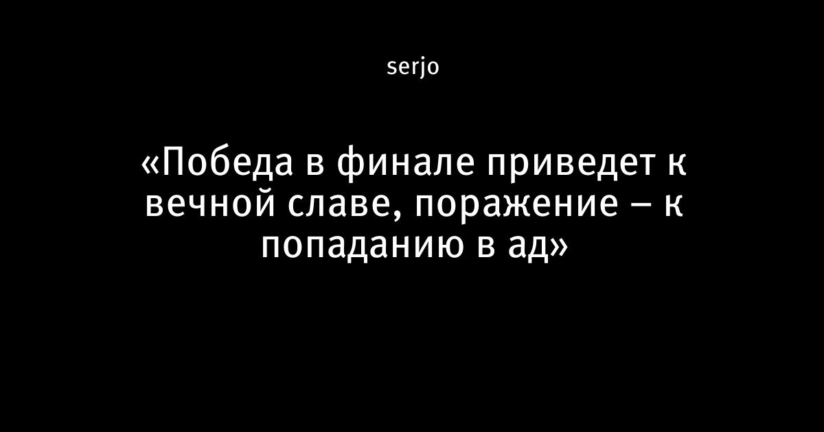 «Победа в финале приведет к вечной славе, поражение – к попаданию в ад»