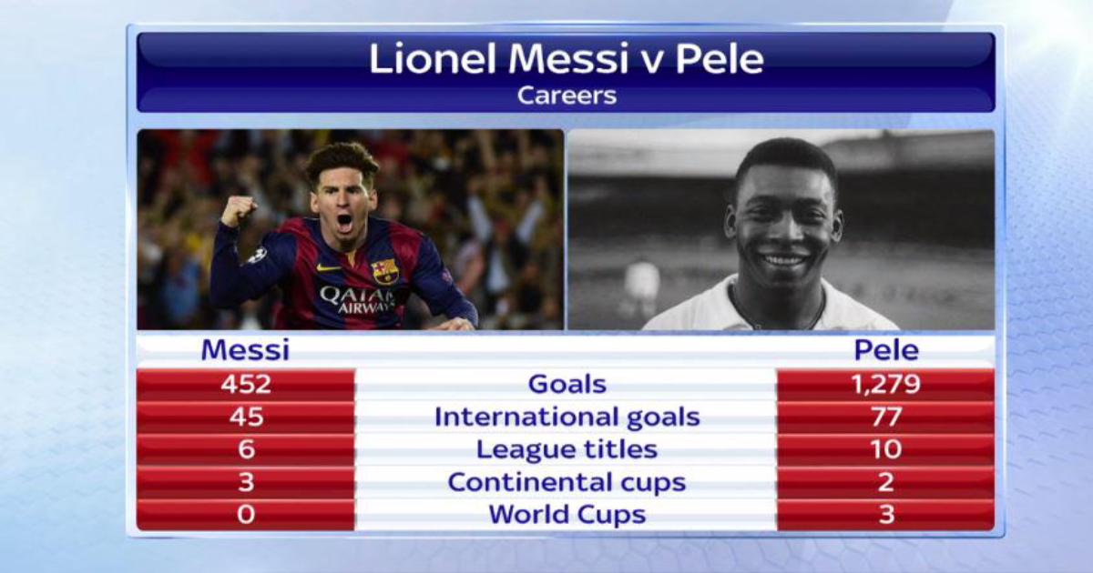 В европе Пеле не играл... в американской лиге мог бы и побольше наколотить. Месси играет в старом свете, а тут виртуозов побольше будет. Да и вообще в то время когда играл Пеле футбол был проще сзема тактик не такая как сейчас. Если поставить любой другой вид спорта в пример, то можно понять что рекорды бьют на каждых турнирах. Пеле был хорош, но он история. Месси играющая легенда, и король футбола современности. Делайте выводы.
