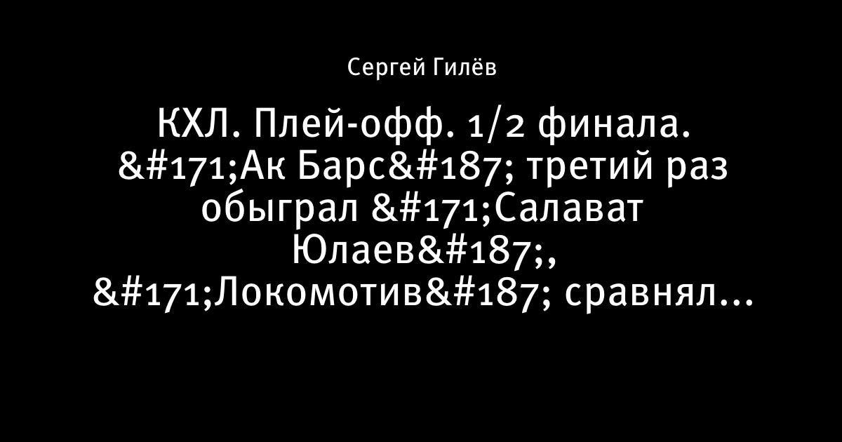 КХЛ. Плей-офф. 1/2 финала. «Ак Барс» третий раз обыграл «Салават Юлаев», «Локомотив» сравнял счет в серии с ХК МВД