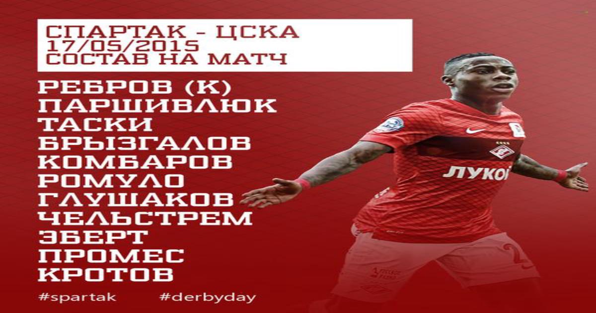 «Спартак»: Ребров (к), Паршивлюк, Брызгалов, Таски, Д. Комбаров, Чельстрём, Ромуло, Глушаков, Промес, Эберт, Кротов.
