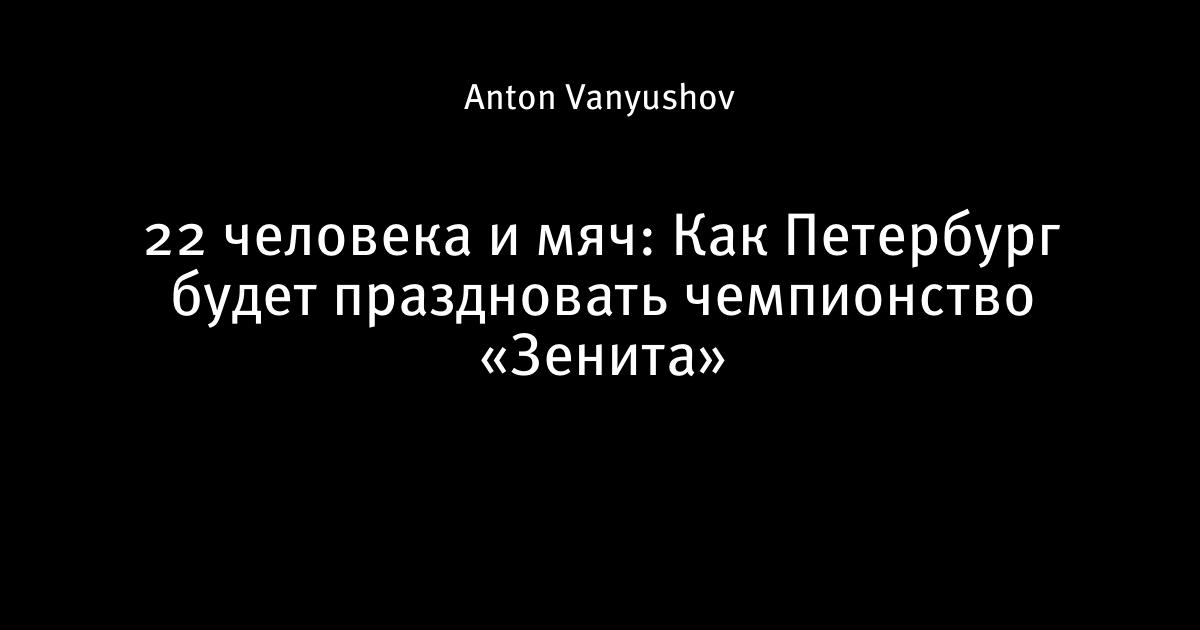 18 мая 2015, 12:29 22 человека и мяч: Как Петербург будет праздновать чемпионство «Зенита» 1 Автор Anton Vanyushov Этот пост опубликован в блоге на Трибуне Sports.ru. Присоединяйтесь к крупнейшему сообществу спортивных болельщиков! Другие посты блога СпортЭксперт премьер-лига Россия Уфа Зенит