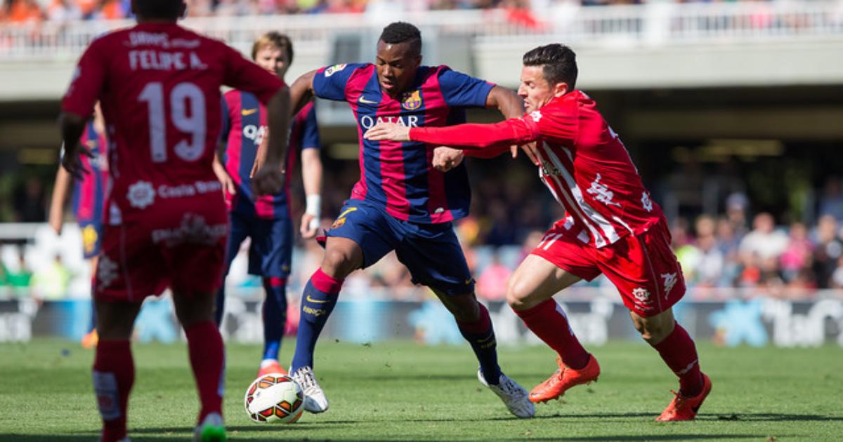 Если Барселона Б борется за выживание, то Жирона напротив за выход в Ла Лигу. В первом круге, Барса в гостях смогла взять 3 очка благодаря голу Халиловича. Так что, игра обещала быть интересной. Дебют встречи остался за подопечными Хорди Виньялса. Уже на 5-й минуте, Сандро сумасшедшим выстрелом открыл счёт, 1-0. Филиал продолжил играть в том же ключе и вплоть до 25-й минуты первого тайма игра была под их контролем. Гости всё таки потихоньку включились в игру и стали создавать опасные моменты. Суарес парировал всё, что мог, но и его усилий было недостаточно, когда после ошибки Сампера был забит мяч. Мата поразил ближний угол, 1-1.