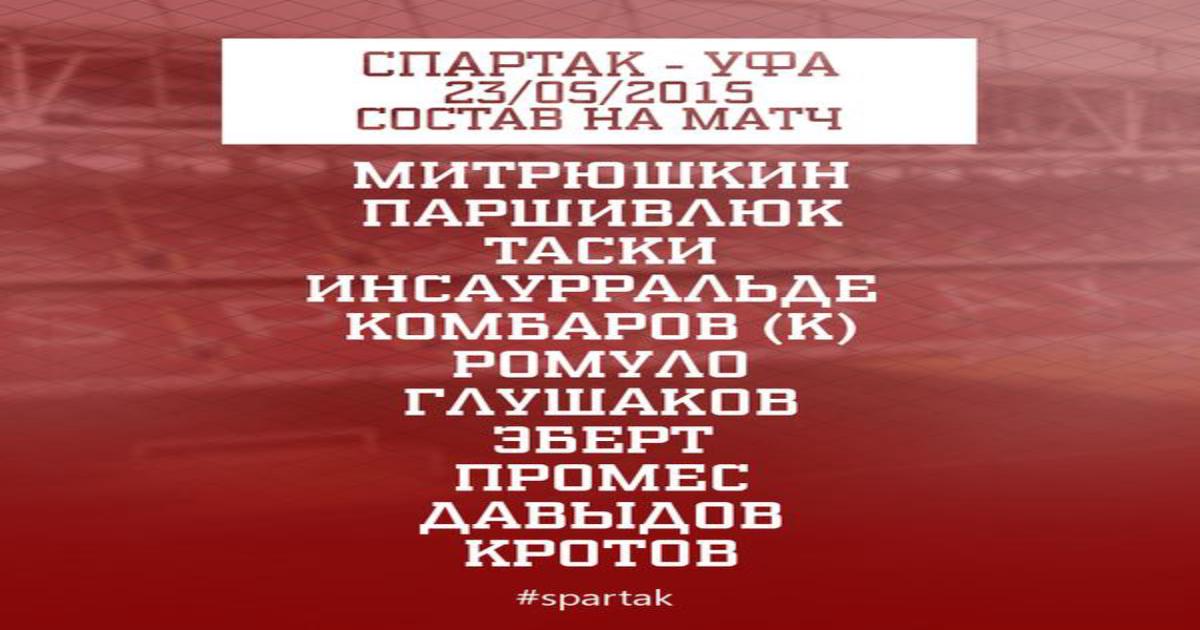 «Спартак» (Москва): Митрюшкин, Паршивлюк, Таски, Инсаурральде, Комбаров (к), Глушаков, Ромуло, Промес, Эберт, Давыдов, Кротов.