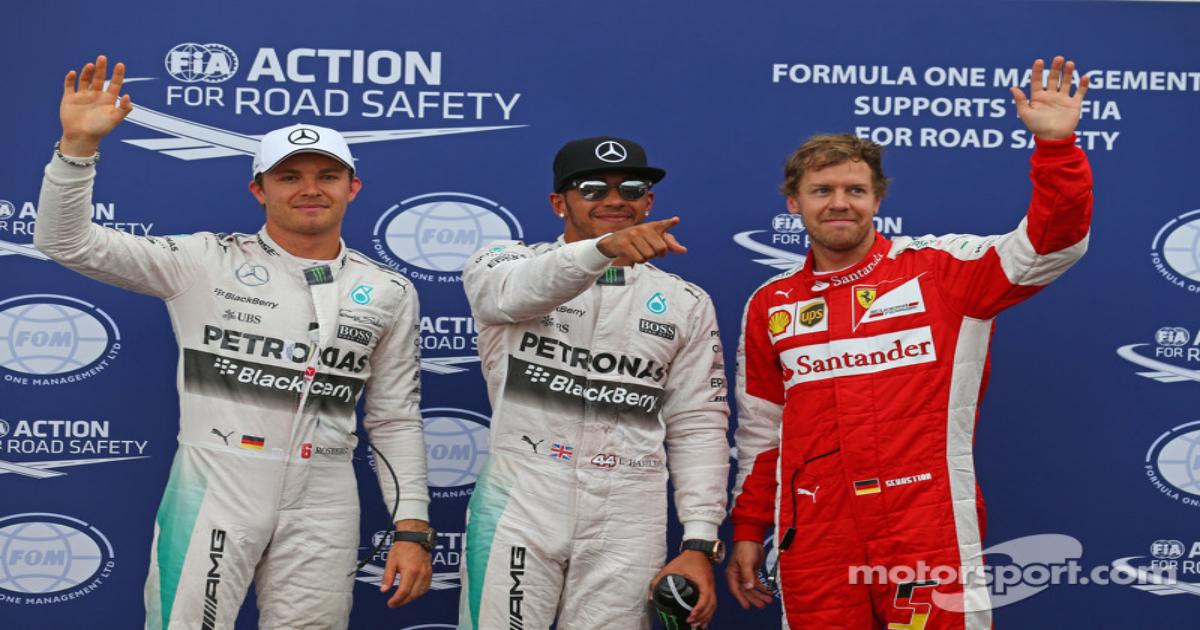 Таким образом, предварительная стартовая решетка выглядит так: Хэмилтон, Росберг; Феттель, Риккардо; Квят, Райкконен; Перес, Мальдонадо; Ферстаппен, Баттон; Хюлькенберг, Масса; Алонсо, Наср; Грожан, Боттас; Эрикссон, Стивенс; Мери, Сайнс.