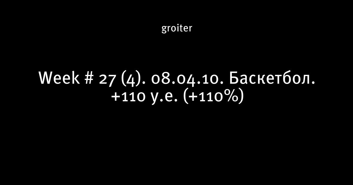 Week # 27 (4). 08.04.10. Баскетбол. +110 у.е. (+110%)