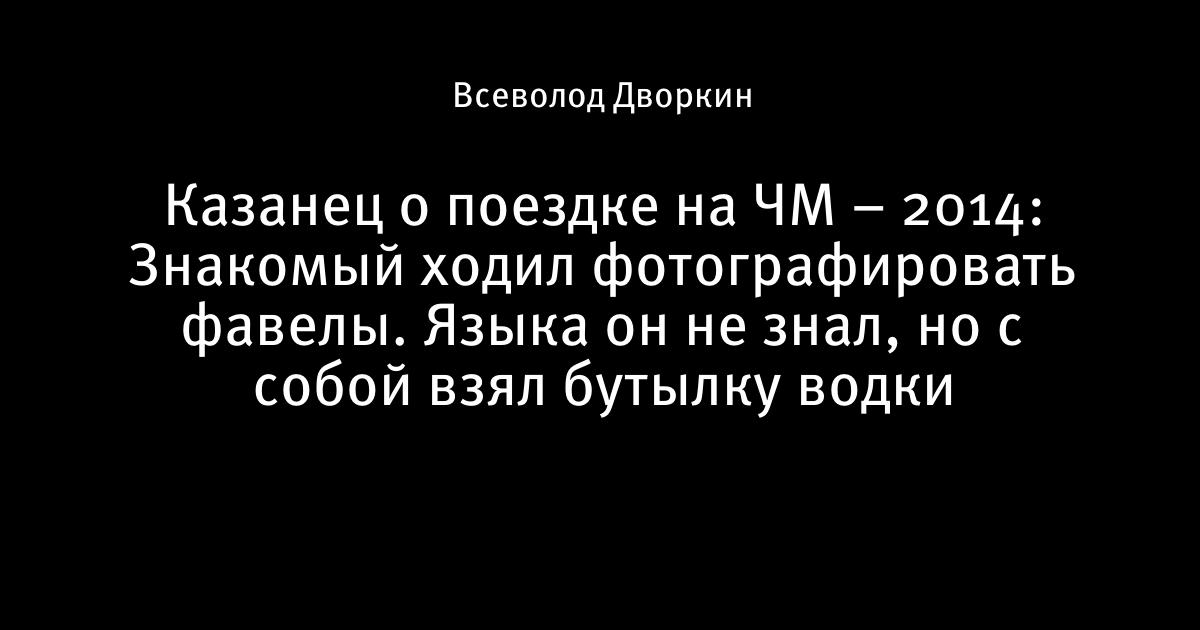 Казанец о поездке на ЧМ – 2014: Знакомый ходил фотографировать фавелы. Языка он не знал, но с собой взял бутылку водки