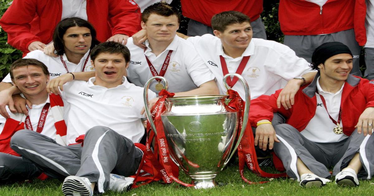 Владимир Шмицер, Милан Барош, Хаби Алонсо, Йон Арне Риисе, Стивен Джеррард, Луис Гарсия. "Ливерпуль". 2005 год.